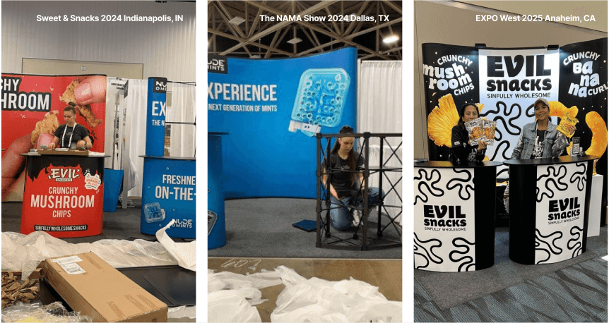 Alongside brand strategy and creative work, I owned end-to-end preparation and on-site representation for multiple major US trade shows - Expo West, Sweets & Snacks Expo, and NAMA. These events represent some of the most competitive retail buyer environments in the CPG industry, where first impressions directly influence distribution deals and partnership conversations.